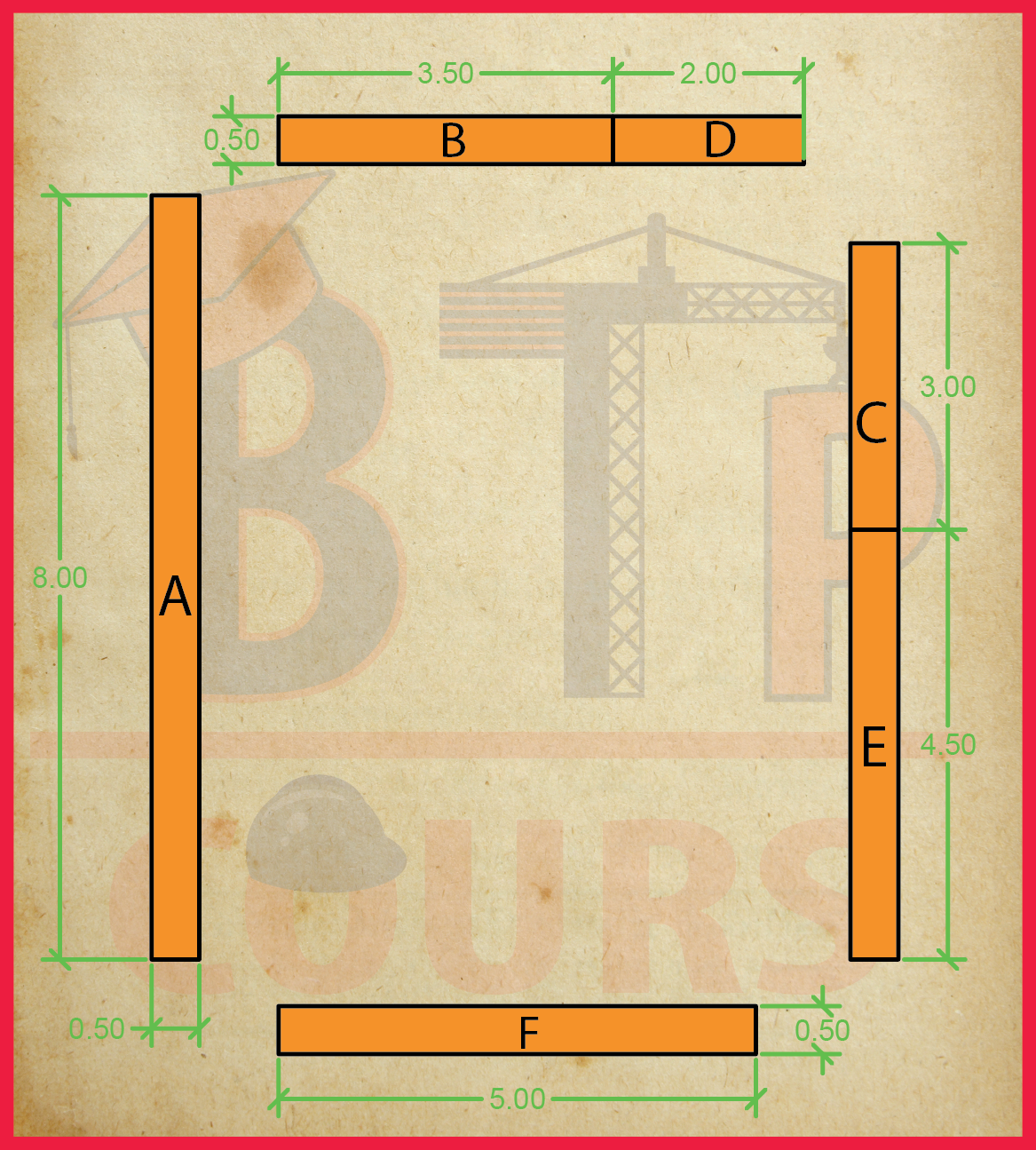 Périmètre = A+B+D+C+E+F = 8+3.50+3+2+4.50+5 = 26ml