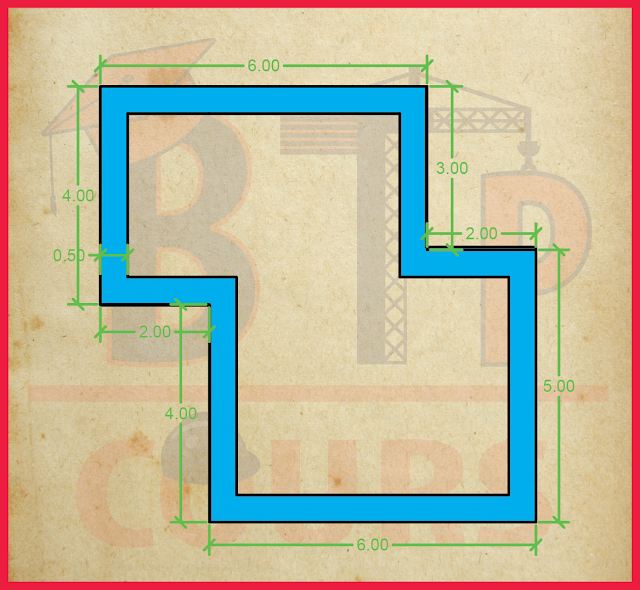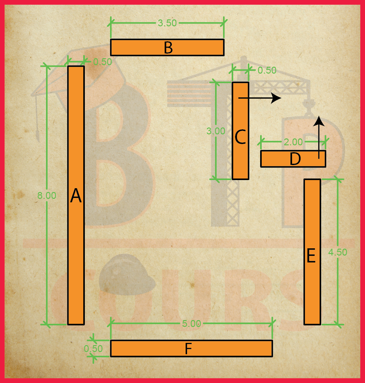 Dans l’exemple qui suit on a une forme rectangulaire de 6 m sur 8 m et un largeur de 0.50 m, on desire calculer le volume de la fouille en rigole.